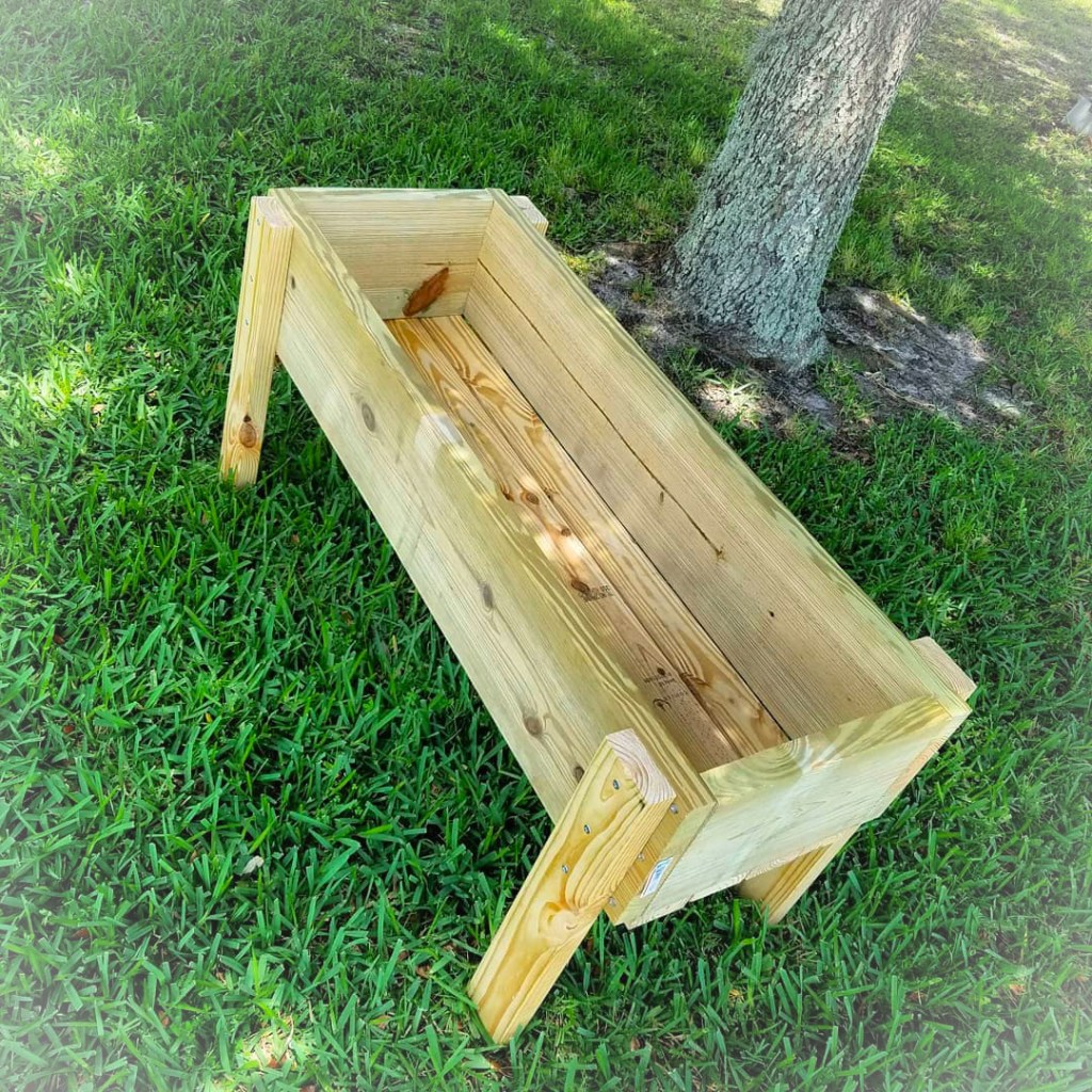 Once we finally had a yard, the garden could finally become a reality. However, being the nomads we are, we decided on building raised garden beds rather than ground contact ones with the thought that we could pick up the raised beds and move them to our next destination (not really practical and I’ll explain why later). I again searched through the internet to find (let’s be honest) the most simple and cheap plans. At the time, I didn’t own any saws so I didn’t want to be “that person” that walked into the store and asked for all these complicated wood cuts. I used a few designs I found to come up with this: